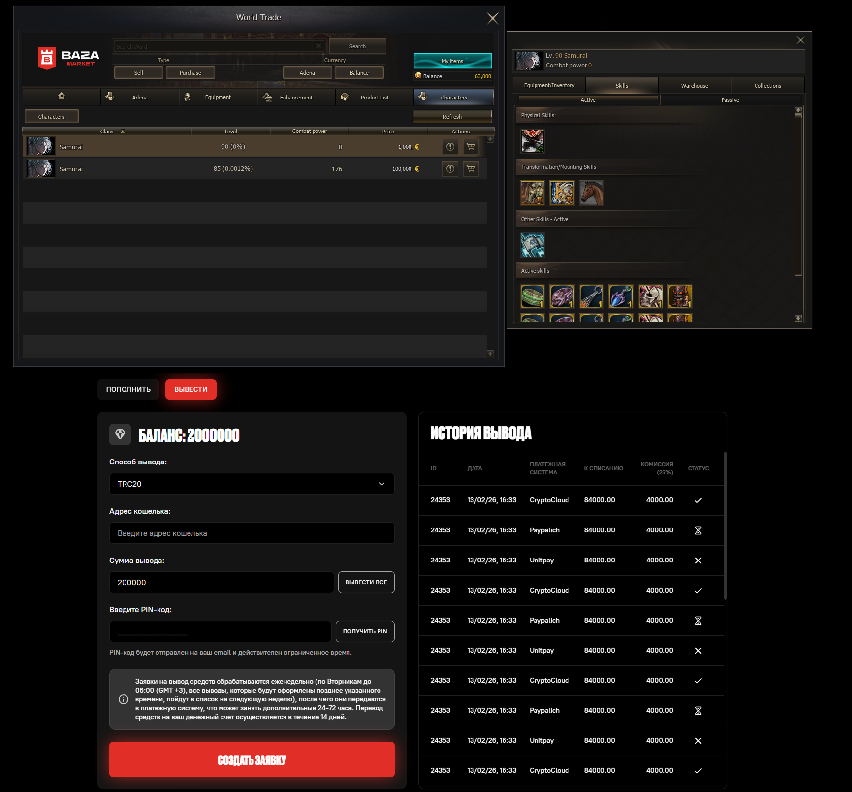- Character Exchange is available with currency withdrawal